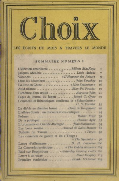 Choix – Les Écrits Du Mois A Travers Le Monde, Services d’information Alliés, Numéro 1-6, 1944