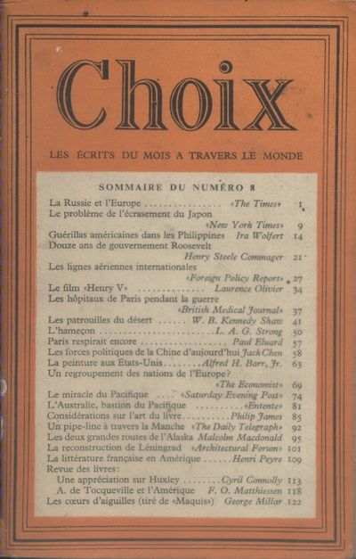 Choix – Les Écrits Du Mois A Travers Le Monde, Services d’information Alliés, Numéro 7-12, 1945